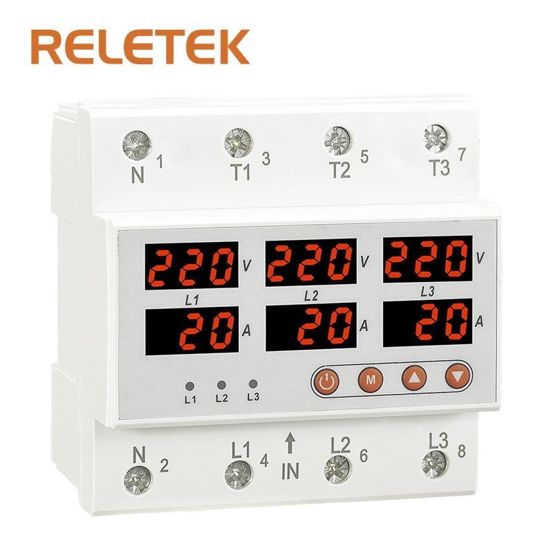 Реле контроля напряжения трехфазное RM-FVA (LCD, 230VAC, 63A, 3NO, 5-600S ON/OFF DELAY, Umax 220-300V, Umin 80-210V, Imax-63A)