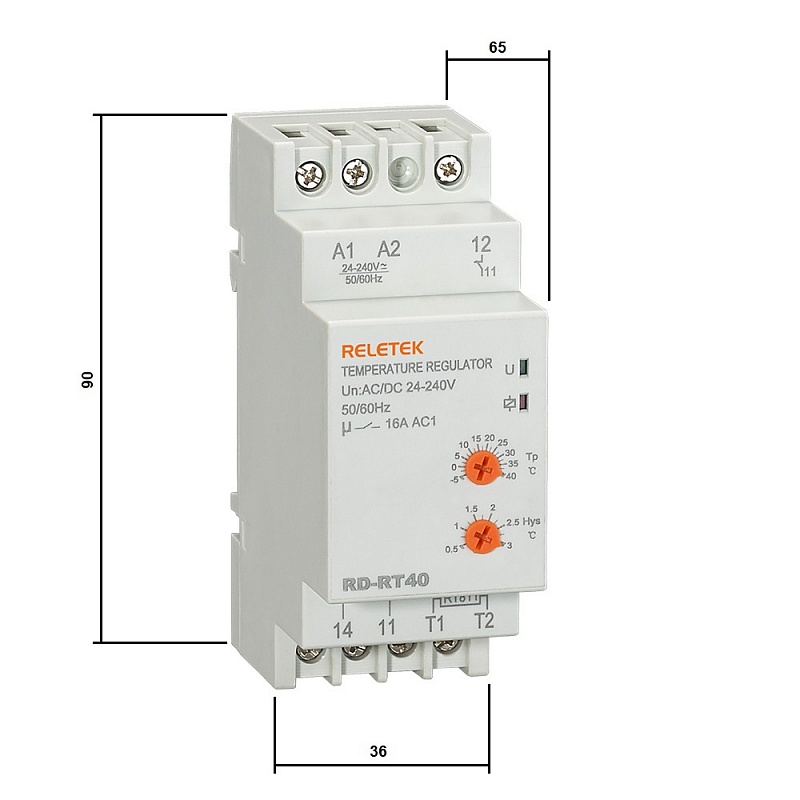 Реле контроля температуры RD-RT40 (RT811-2,5m, 24-240VAC/DC, 16A/230VAC, 1CO, -5+40C)