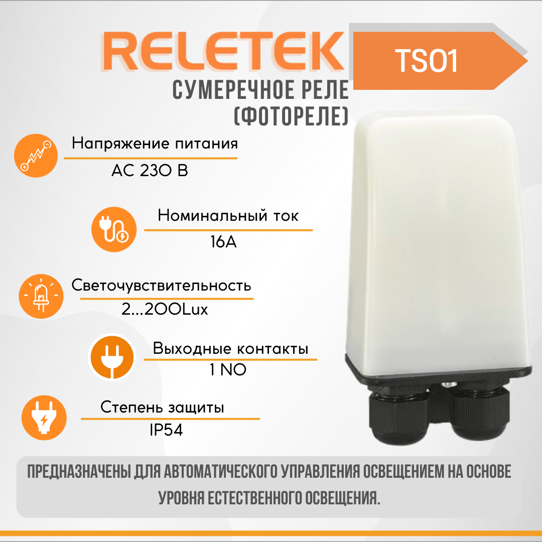 Сумеречное реле (фотореле) TSO1 (2-200LX, 16A/230VAC, 1NO, 2000W)