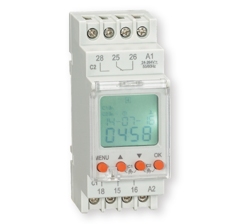Таймер цифровой двухканальный RD-TPD2 (LCD, 90 PROG, WEEK-DAY-CIRCLE, 24-264VAC/DC, 16A/230VAC, 2CO, 10 YEARS LI-BATTERY)
