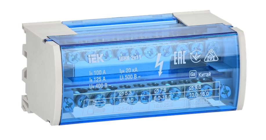 Шины выполнены из высококачественной латуни, изолирующая задняя панель и прозрачная защитная крышка выполнены из самозатухающего пластика.