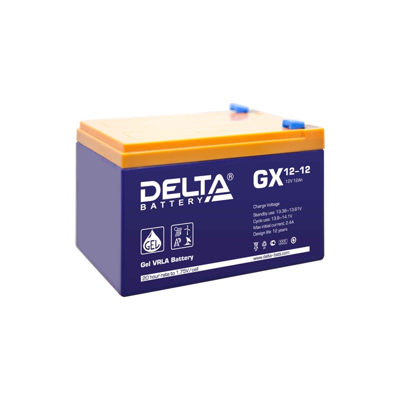 Гелевый аккумулятор. Напряжение 12В, емкость 12Ач. Устойчив к глубоким разрядам, имеет широкий диапазон рабочих температур. Срок службы 10 - 12 лет. Габариты, мм (Д/Ш/В) 151/95/101