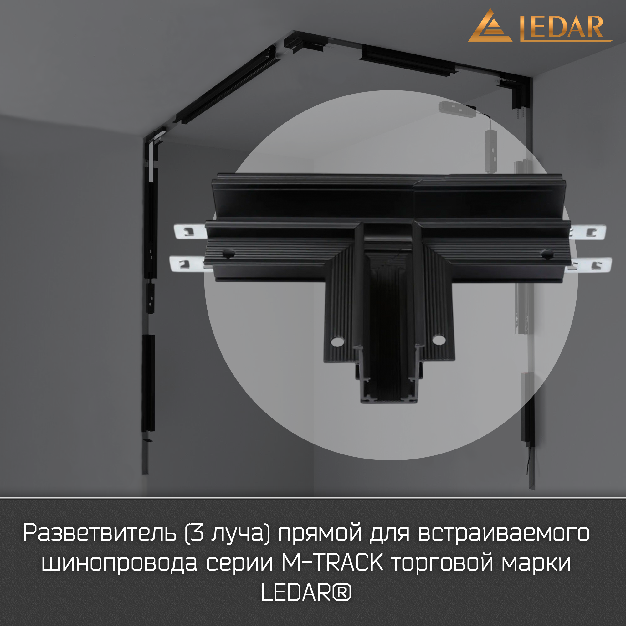 Разветвитель (3 луча) прямой для встраиваемого шинопровода серии M-TRACK торговой марки LEDAR®