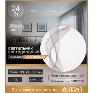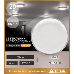 Светильник круглый встраиваемый (LED) 21Вт 1890лм 6500К D220х38мм белый LEDAR