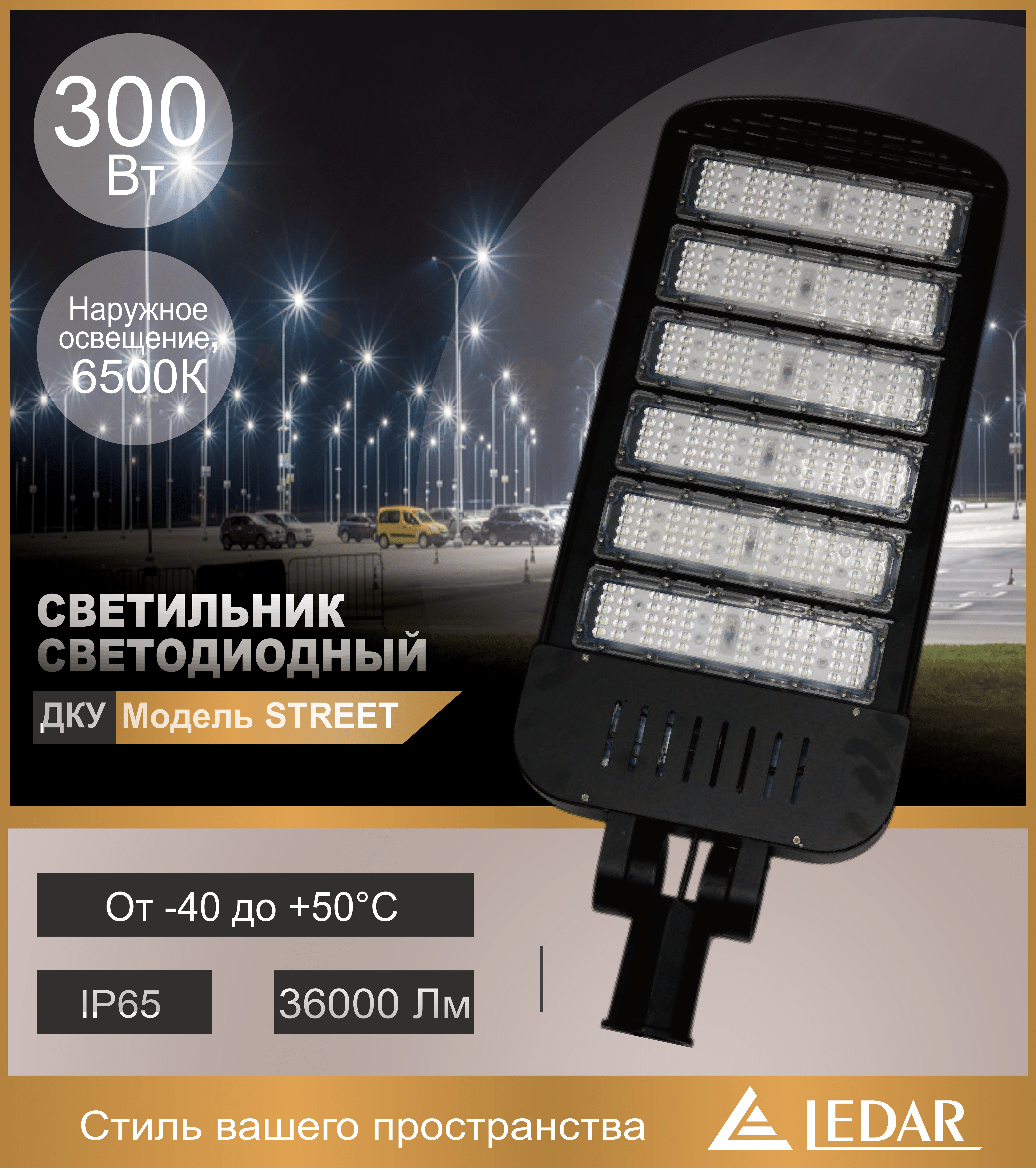 Светильник светодиодный ДКУ STREET 300W 6500К черный LEDAR
