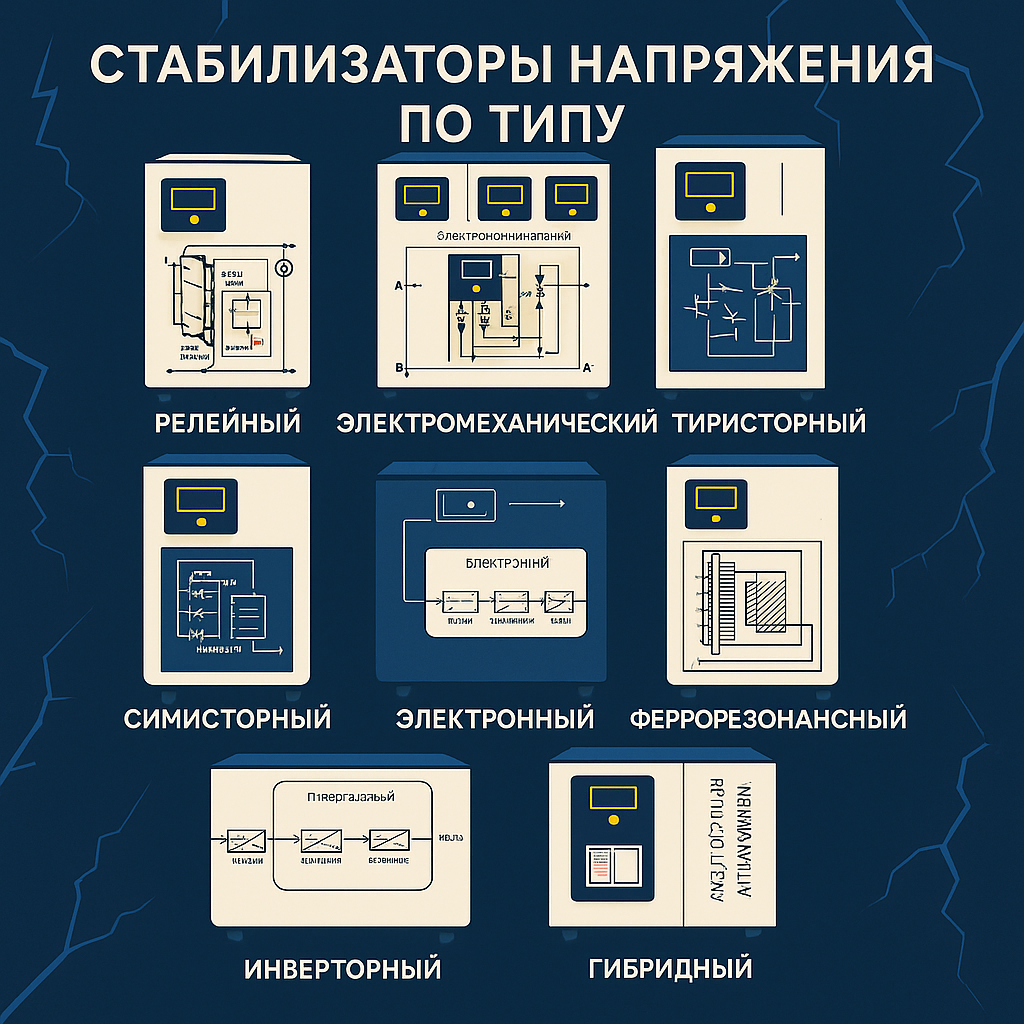 - электронные (т.н. релейные) - меняют напряжение на выходе дискретно (ступенями)